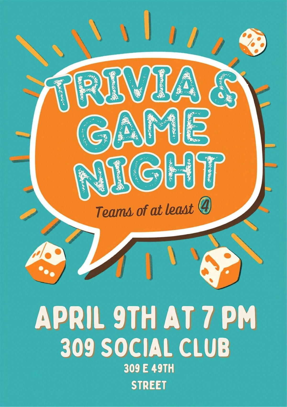 Join us for a fun-filled Trivia and Game Night where you can team up with friends or make new ones! Think you’ve got what it takes to win? Come test your knowledge, play some exciting games, and enjoy a relaxed, in-person evening full of laughs and good vibes. Whether you’re a trivia whiz or just looking to have a blast, this night’s for you. Don’t miss out on the fun – see you there!