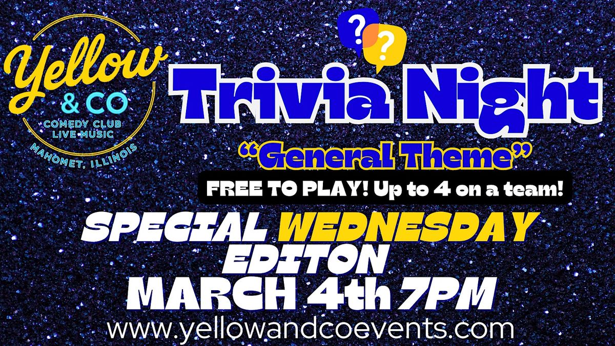 Trivia Night "General Knowledge" theme" at Yellow & Co.