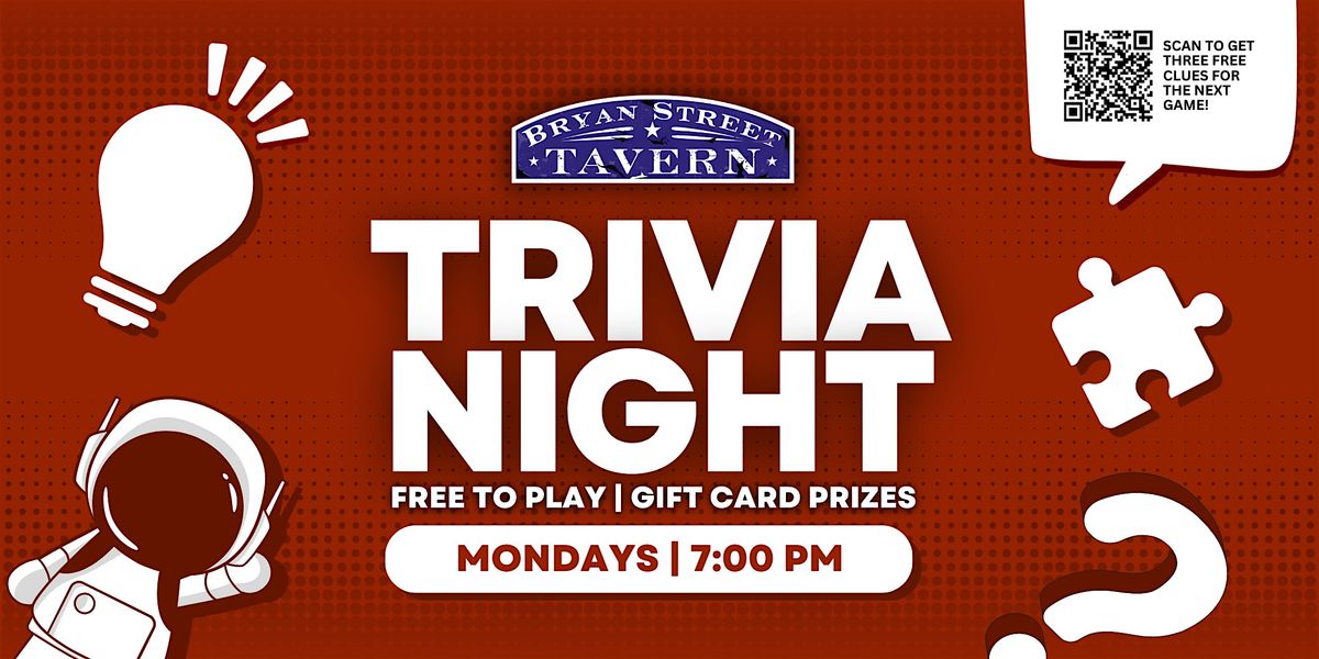 Join us every Monday at 7:00 PM at Bryan Street Tavern in Dallas for FREE, live, team trivia! The top teams win gift card prizes!