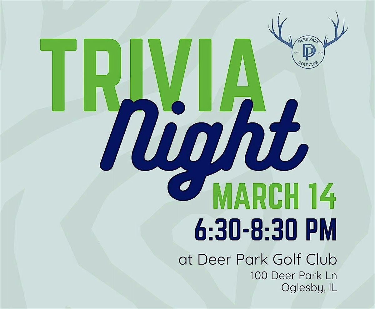 Join us at Deer Park Golf Club for a fun-filled evening of trivia on March 14, 2026 at 6:30pm (Central Time).