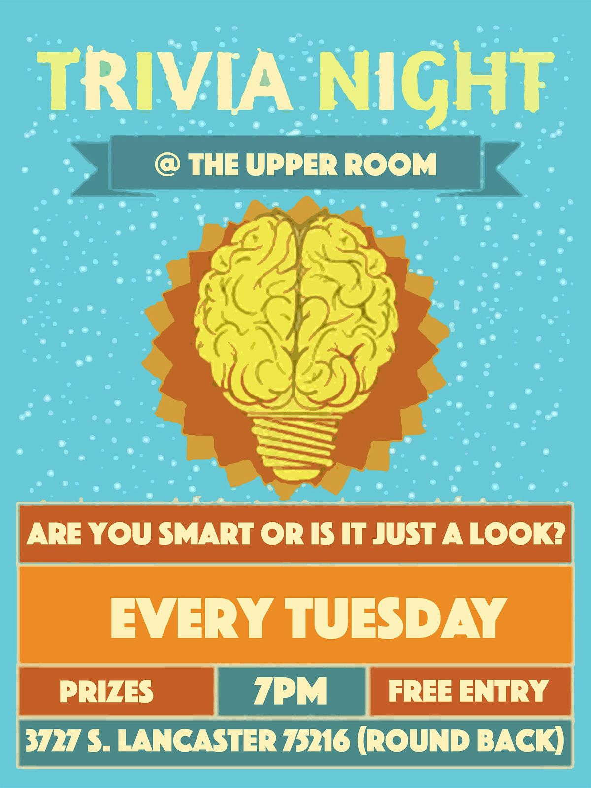 Join us every week for the most entertaining trivia night in Oak Cliff—where good vibes and friendly competition collide! Whether you’re a trivia pro or just in it for the laughs, this is your night to shine. Bring your squad, meet new people, win prizes, enjoy music, and unwind with trivia night going up on a Tuesday.