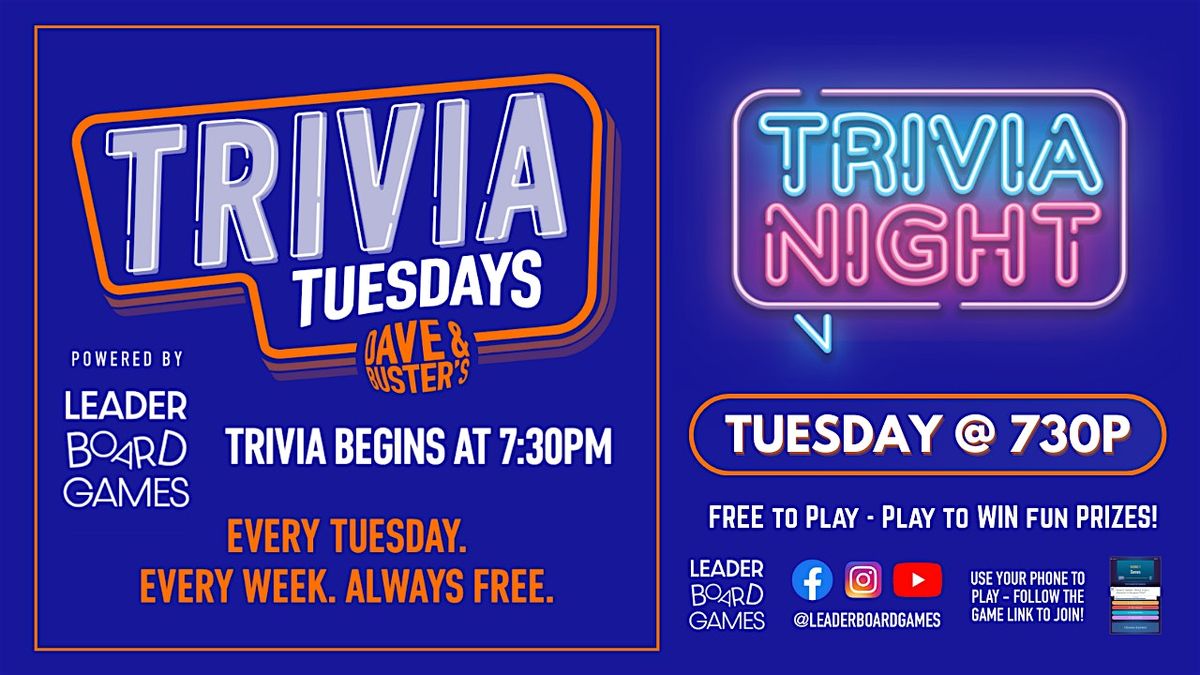 Trivia Night | Dave & Buster's - Killeen TX - TUE 730p @LeaderBoardGames