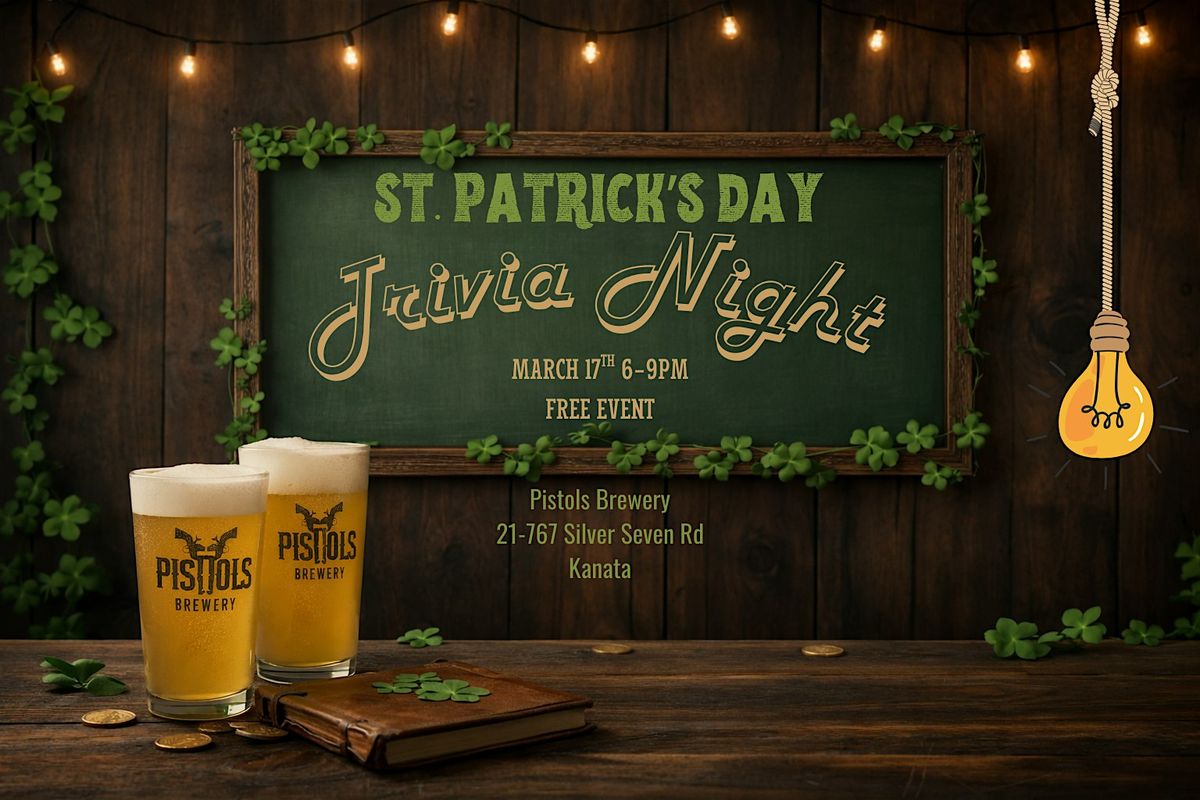 Put your knowledge to the test this St. Patrick’s Day at Pistols Brewery! Join us on March 17, 2026 at 6:00PM for a laid-back night where you can team up with friends, test your knowledge, and enjoy great brews. Whether you're a trivia pro or just in it for the sips and socialization, this is the perfect way to spice up your Tuesday. Don't miss out on the good vibes and friendly competition.
