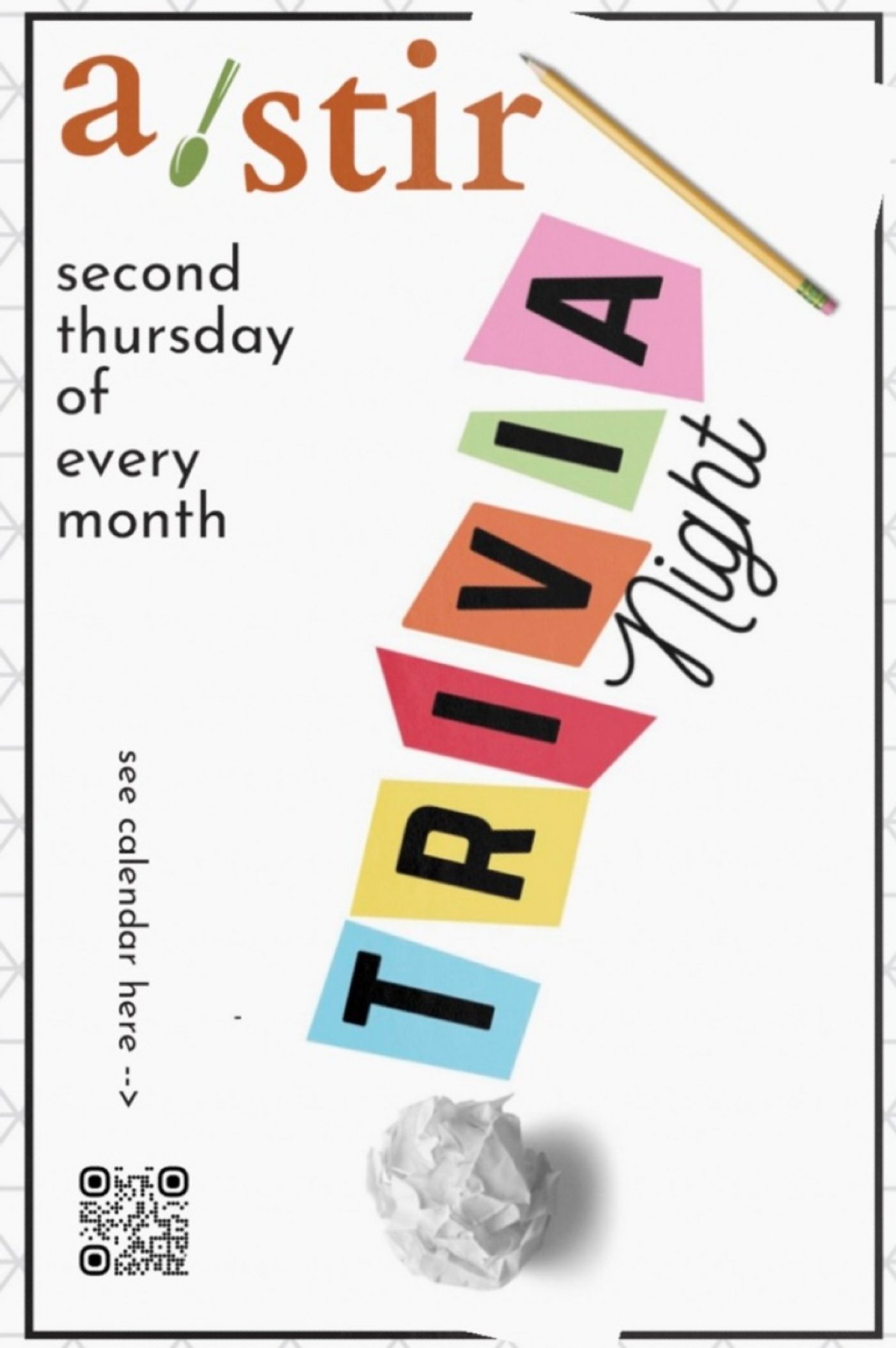 Join us for our monthly trivia night Downstairs at a/stir! How is this trivia different than every other trivia night, you ask? Well, over the two hour event, there will definitely be questions on random facts - ranging from pop culture to sportsball to music and movies to history to geography – but all with an added twist.
