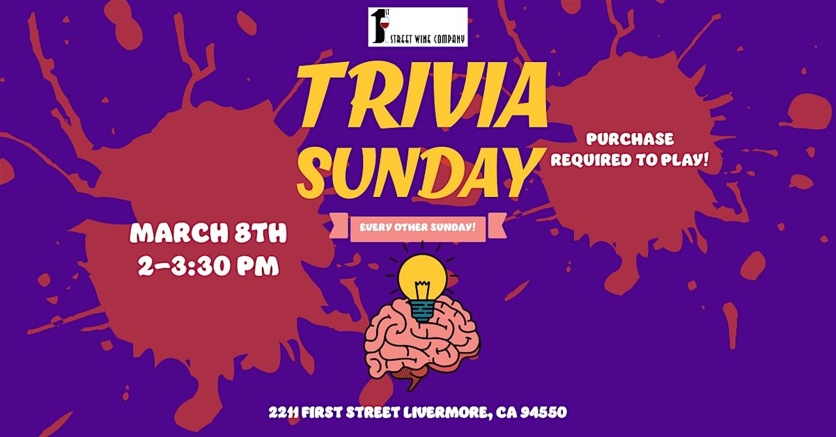 Get ready for a fun-filled Sunday at First Street Wine Co! Join us on March 8th 2026 from 2-3:30 PM (Pacific Time) for some awesome trivia, great vibes, and tasty sips. Whether you're a trivia whiz or just looking to hang out, this is the place to be. Bring your friends, test your knowledge, and enjoy a chill Sunday morning with us! Continually roating Singo Bingo and Trivia Sundays every other Sunday.