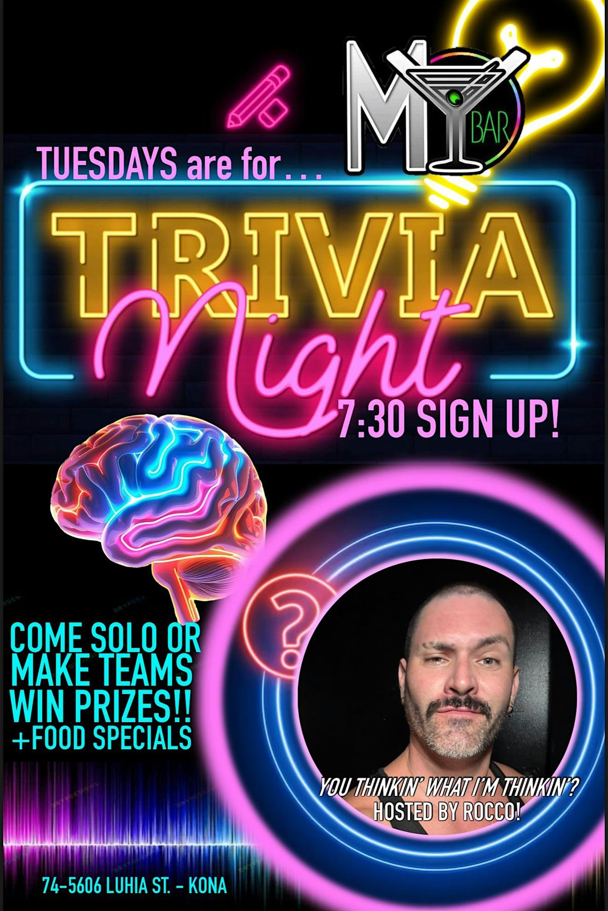 TRIVIA TUESDAYS AT MY BAR KONA!