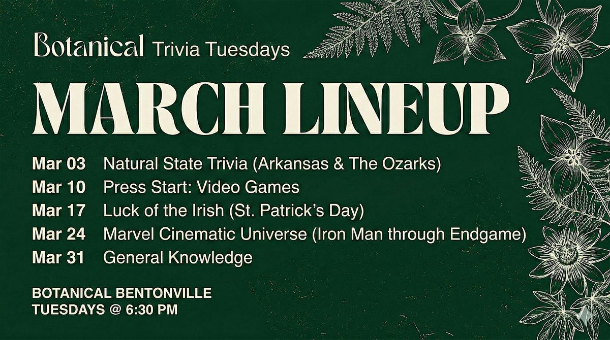 Ready to test your knowledge about Arkansas and the Ozarks? Join us every Tuesday for a fun, in-person trivia night all about the Natural State! Whether you're a local expert or just love learning cool facts, this is the perfect way to spend your evening with friends and fellow trivia buffs. Come hang out, flex your brain muscles, and enjoy some friendly competition. See you there!