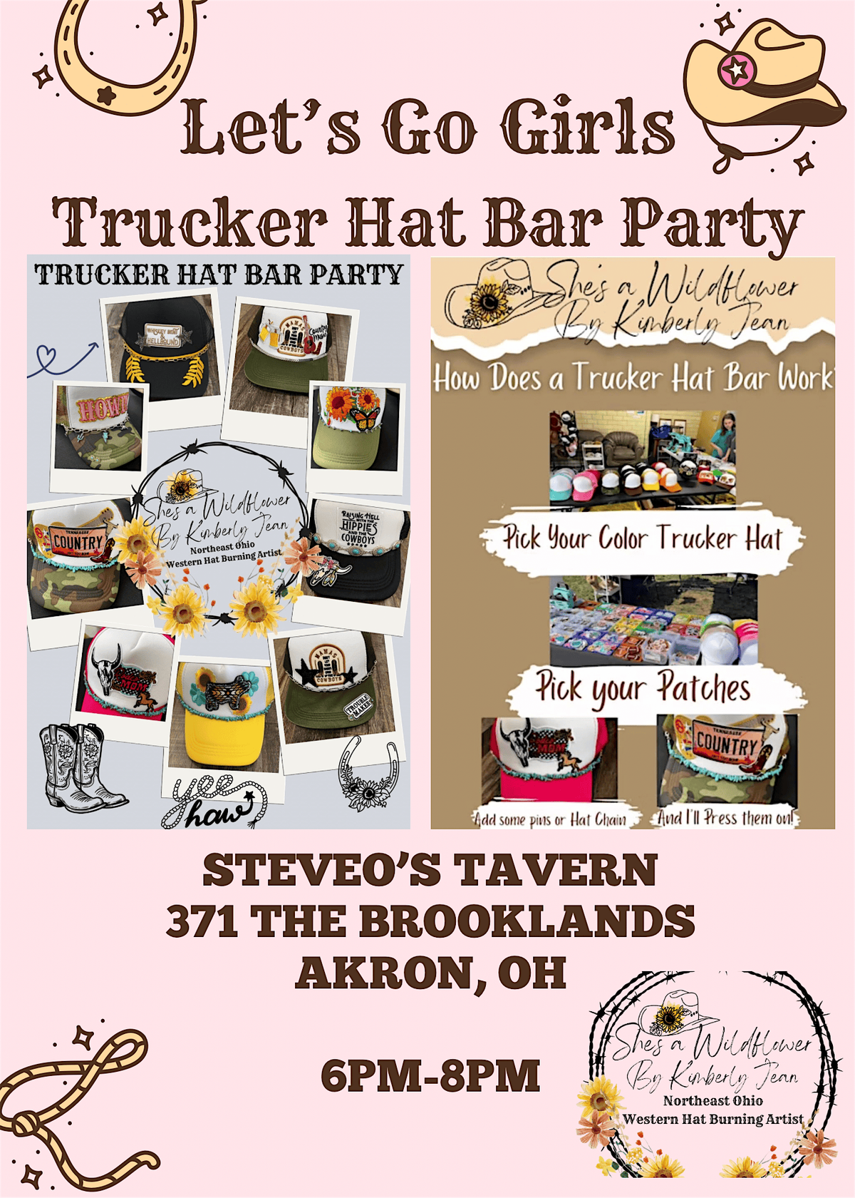 Get ready to make your new favorite trucker hat, listen to some music and enjoy some adult beverages! If you've been wanting to make a Trucker Hat, now is the time! Always good vibes, great drinks and a memorable time with friends.