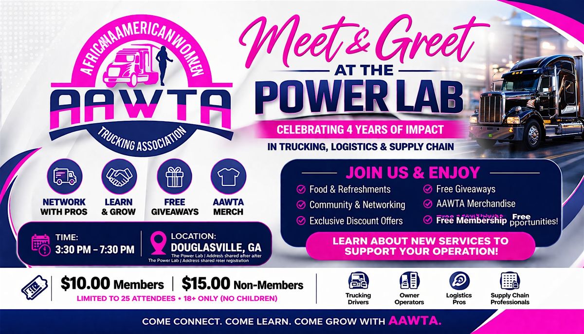 Join the African American Women Trucking Association (AAWTA) as we celebrate 4 years of impact and open the doors to our new Douglasville, GA location — The Power Lab.