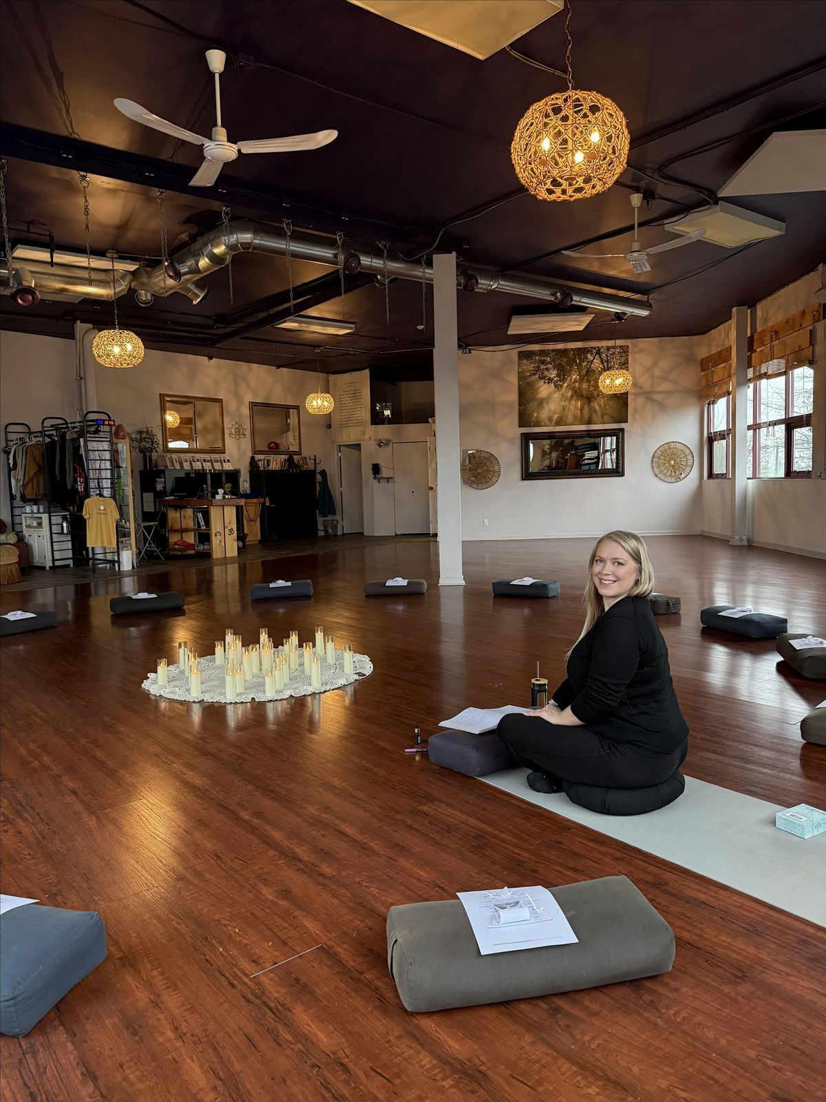 Provided: yoga mat, cushions, blankets, free gift