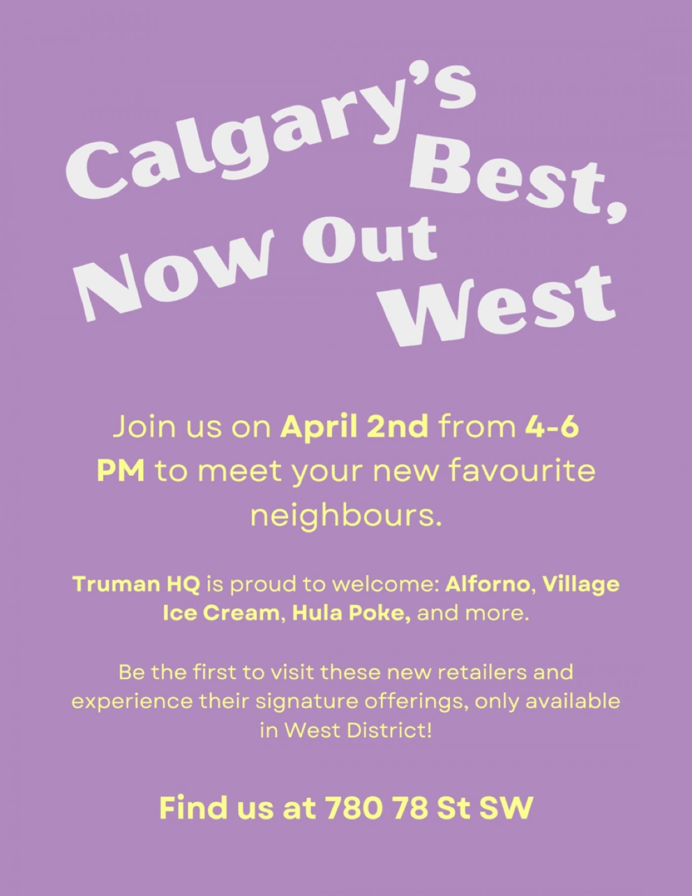 Truman Headquarters is proud to announce the upcoming grand opening of two of Calgary's most celebrated brands in West District, the city's newest downtown-adjacent neighbourhood destination. Alforno and Village Ice Cream will officially open their doors this Spring, bringing a best-in-class retail and dining experience to Calgary's west side.