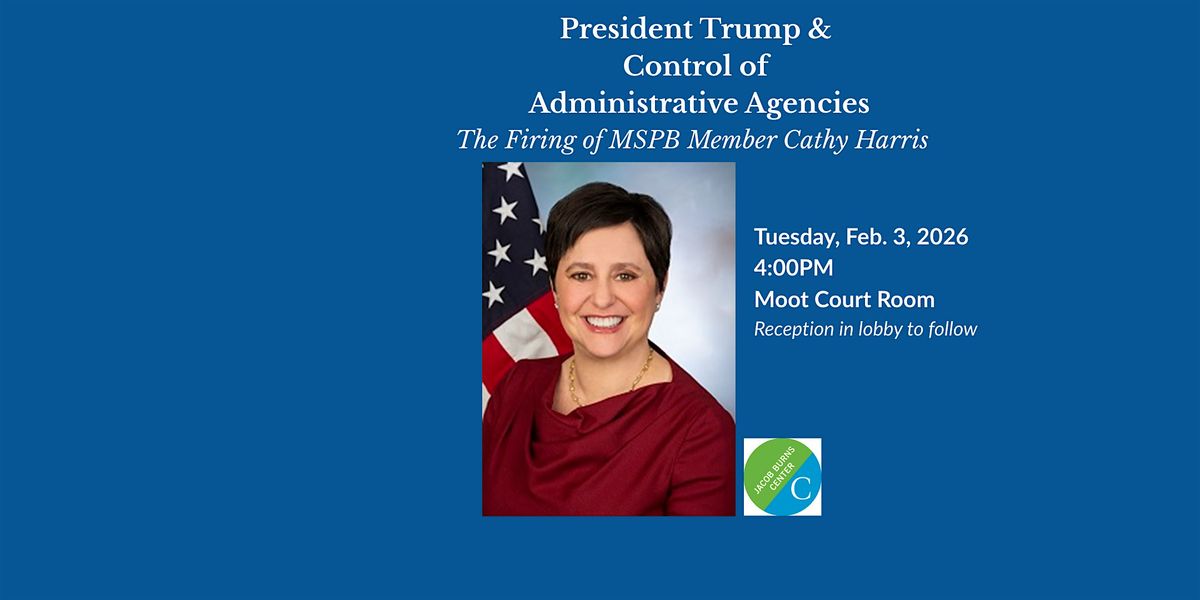 On February 3, 2026, Cathy Harris will join her attorney, Nathaniel Zelinksy, at Cardozo to discuss her lawsuit against Trump and his administration challenging her firing her as a member of the National Merit System Protection Board. This conversation will be moderated by Professor Jessica Roth.