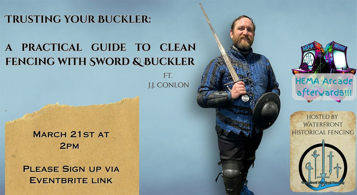 Waterfront Historical Fencing is happy to host JJ Conlon, a prominent practitionar, competitor and memeber of the historical fencing community for a seminar on the intricacies of this weapon set. The class will focus on helping newer practitionars to feel comfortable with the buckler and giving new tools for the advanced to become more efficient.