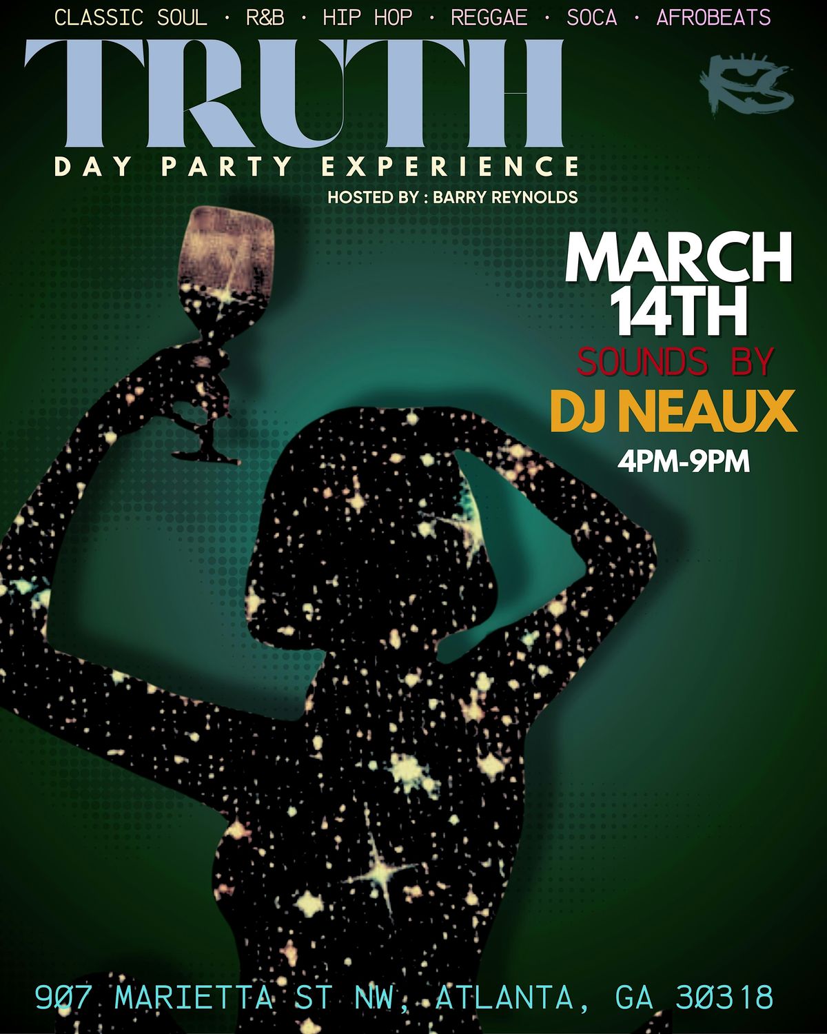 TRUTH - The Day Experience is an amazing event hosted and promoted by Atlanta's own Barry Reynolds with a proverbial (gumbo) mixture of hip hop, r&b, classic soul, reggae, soca & afrobeats by the incomparable DJ NEAUX. This event brings the sexy ambiance of Rock Steady's upstairs music gallery boasting an Afro-Carribean vibe with some of the best mixologists and sexiest vibes in the city of Atlanta. Bring out the grown, sexy and high energy for this one! Please remember this event is held Upstairs in the Music Gallery!