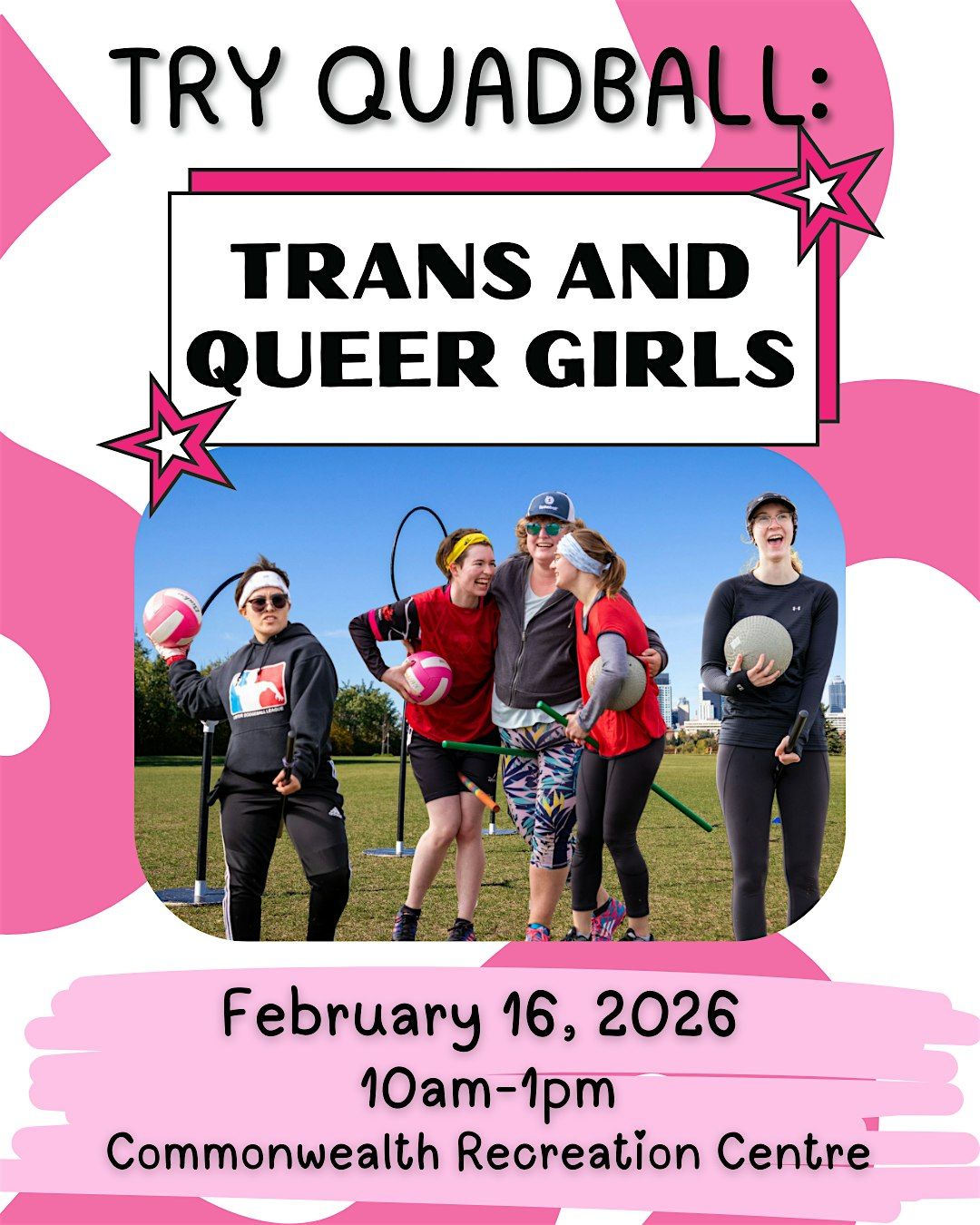 Looking to dive into something new and exciting? Join us in person to try out Quadball – a fast-paced, fun, chaotic sport that is perfect for trans and queer girls. It's all about community, inclusivity, and having a great time on the field. Come hang out, get active, and meet awesome people in a welcoming space. No pressure, just good vibes and good sport!