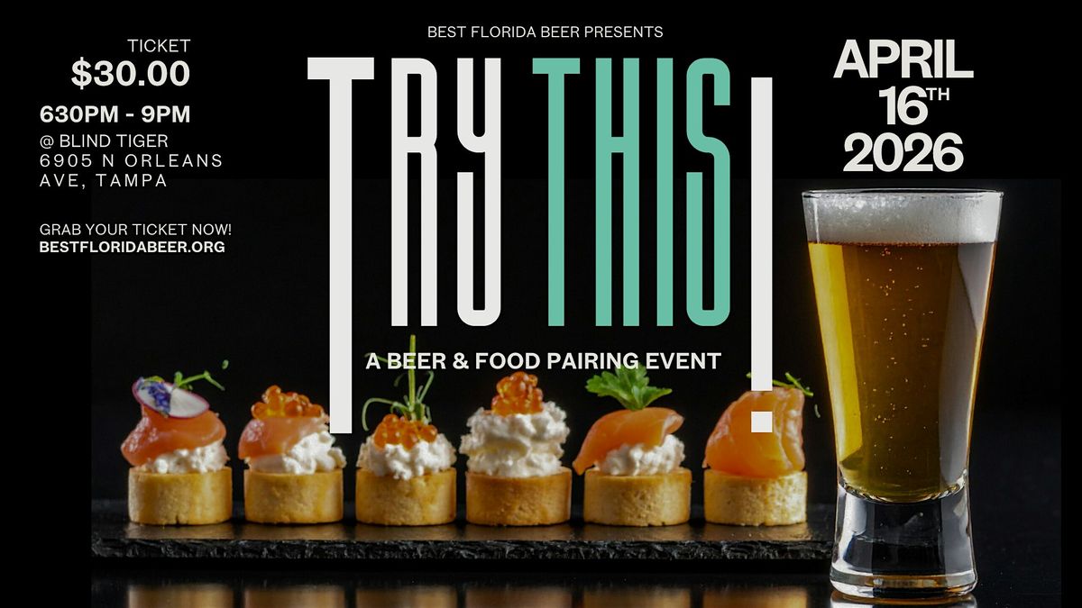 Join us for Try This! A Beer and Food Pairing Night on April 16th from 6:30 to 9:00 PM at Blind Tiger in Seminole Heights.