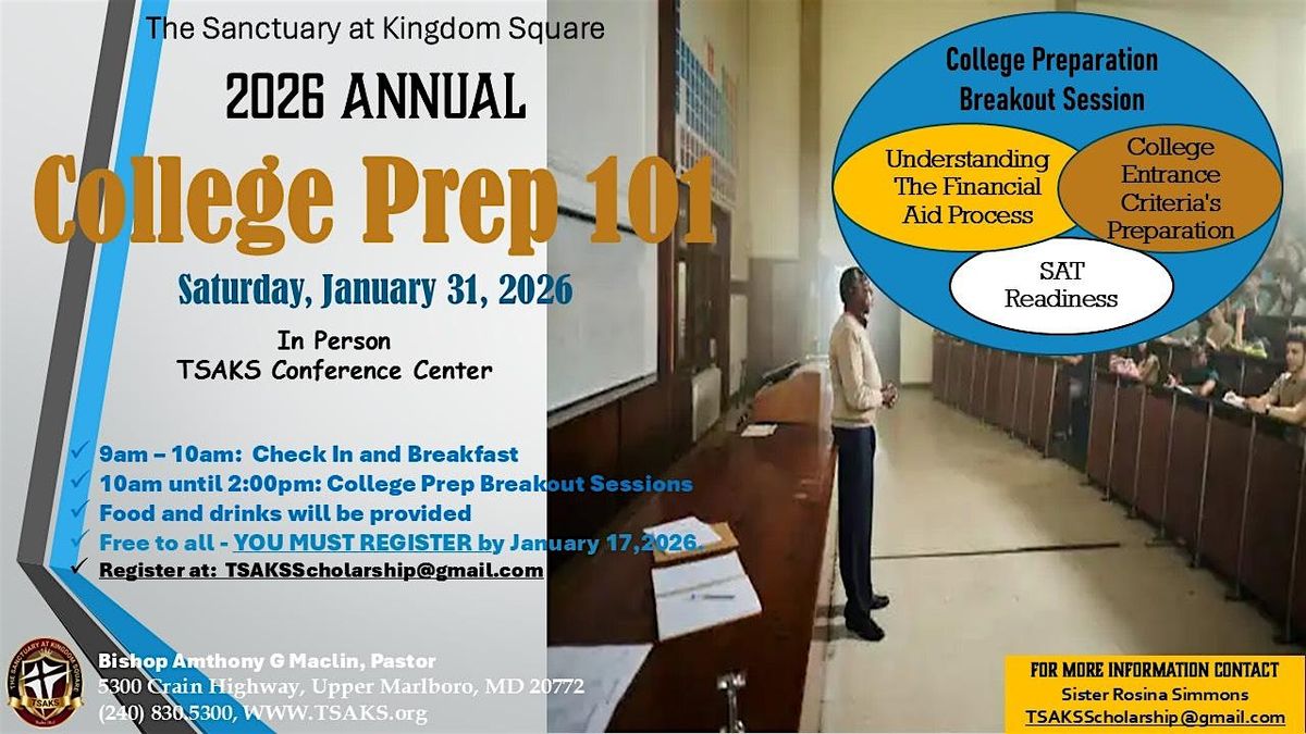Join Us for the TSAKS (The Sanctuary at Kingdom Square) College Prep 101 Seminar!