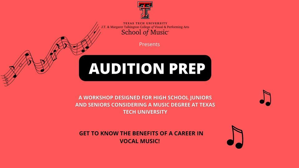 AUDITION PREP is a FREE workshop designed for High School Juniors and Seniors considering a music degree at Texas Tech University!