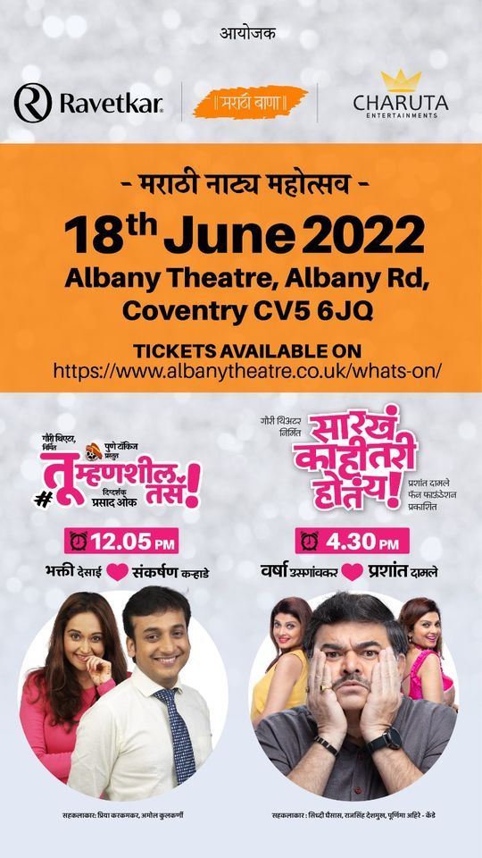 UK Natyamahotsav aims to entertain the Marathi speaking community from India who now are based in the UK. Consisting of two hilarious Marathi plays,The first performance (12:05pm) is the comedy Tu Mhanshil Tasa starring Bhakti Desai and Sankarshan Karhade. The story revolves around a young married professional couple and how their growingly hectic lifestyles are changing their lives. Will their relationship develop and improve for the better?