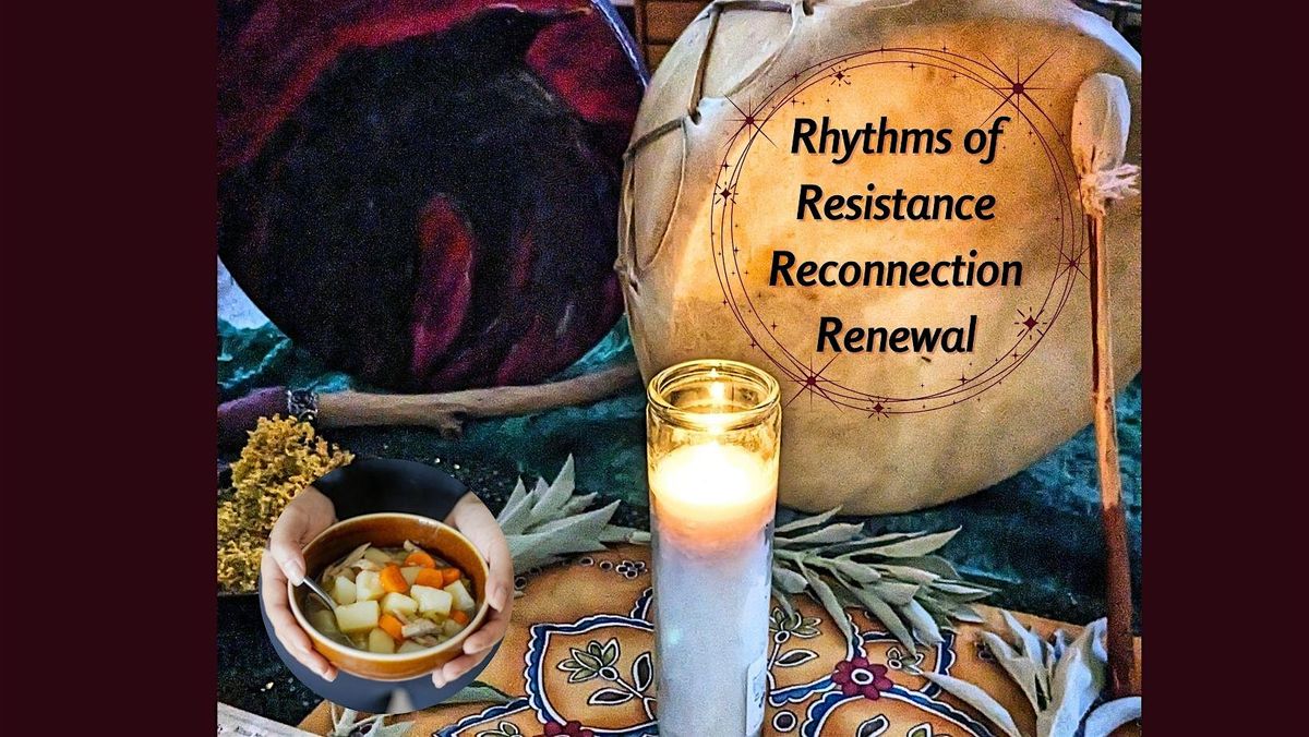 During this important time, rhythms of drum and soundmakers can help us release, renew, and reconnect. This collective circle is an opportunity to strengthen our resolve with rhythm (drum, rattle, bell, voice) for prayer and soul soothing, in a group of like-minded Beings (human and spirit). Veggie/Vegan soup is shared after our rhythm session.