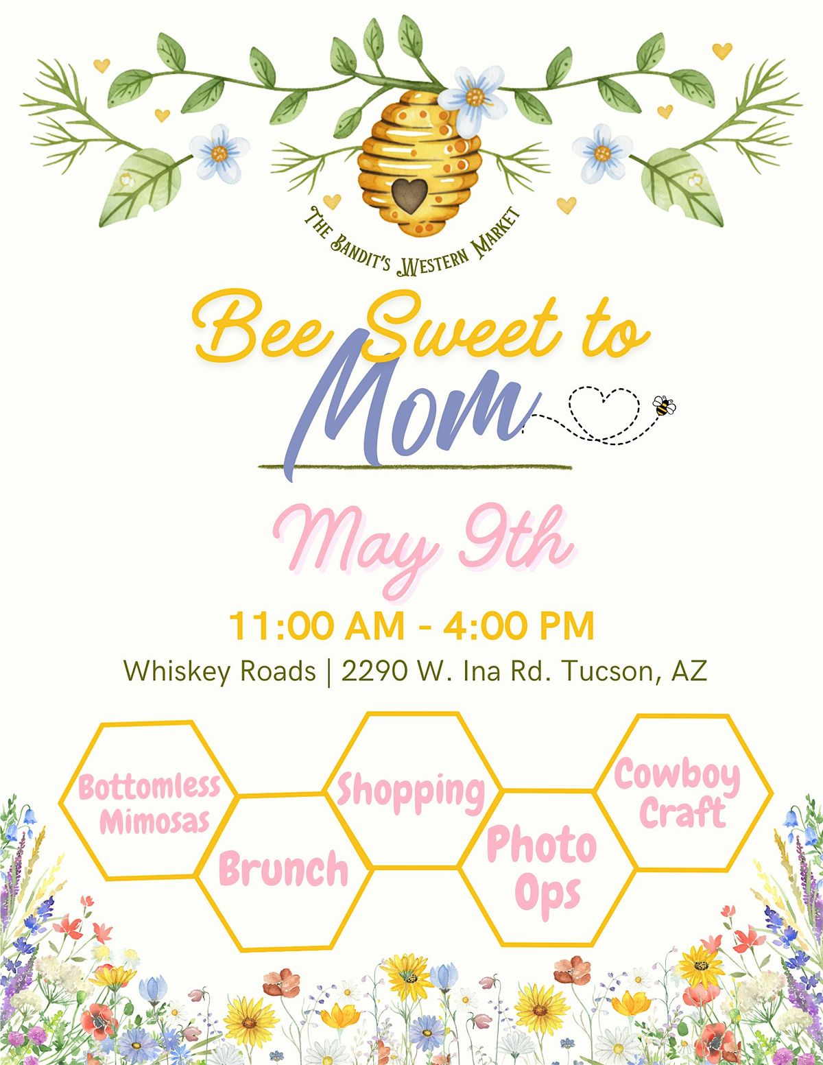 Join us for Bee Sweet to Mom, a Mother’s Day edition of The Bandit’s Western Market—where western charm meets soft, feminine spring vibes for the perfect day of shopping, sipping, and celebrating the women we love most.