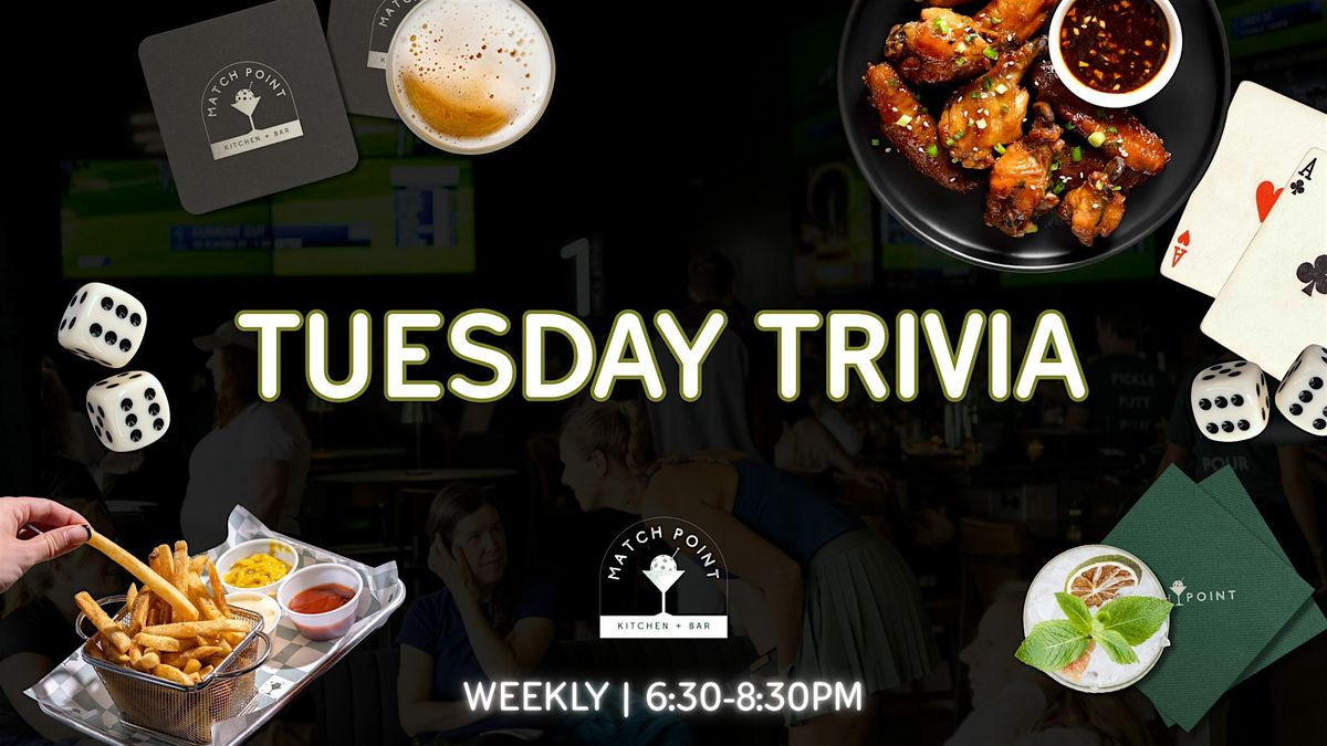 Trivia Tuesdays at Bounce + Match Point Kitchen!Gather your crew and join us every Tuesday night from 6:30-8:00 PM for Trivia at Bounce and Match Point Kitchen!