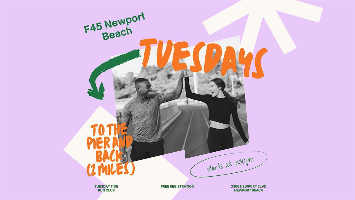 Looking to keep your weekday vibes active? Join the Tuesday Tide Run Club for a chill, community driven in-person run! Whether you're sprinting or strolling, this is the perfect way to catch some fresh air and meet new friends who love or tolerate running just as much as you do. Lace up your sneakers, bring your energy, and let's head out to the pier and back together. Everyone's welcome, from newbies to seasoned runners. See you on Tuesday! (do not have to be a member of F45 Newport Beach to join, we are offering this to our Newport beach community for free)