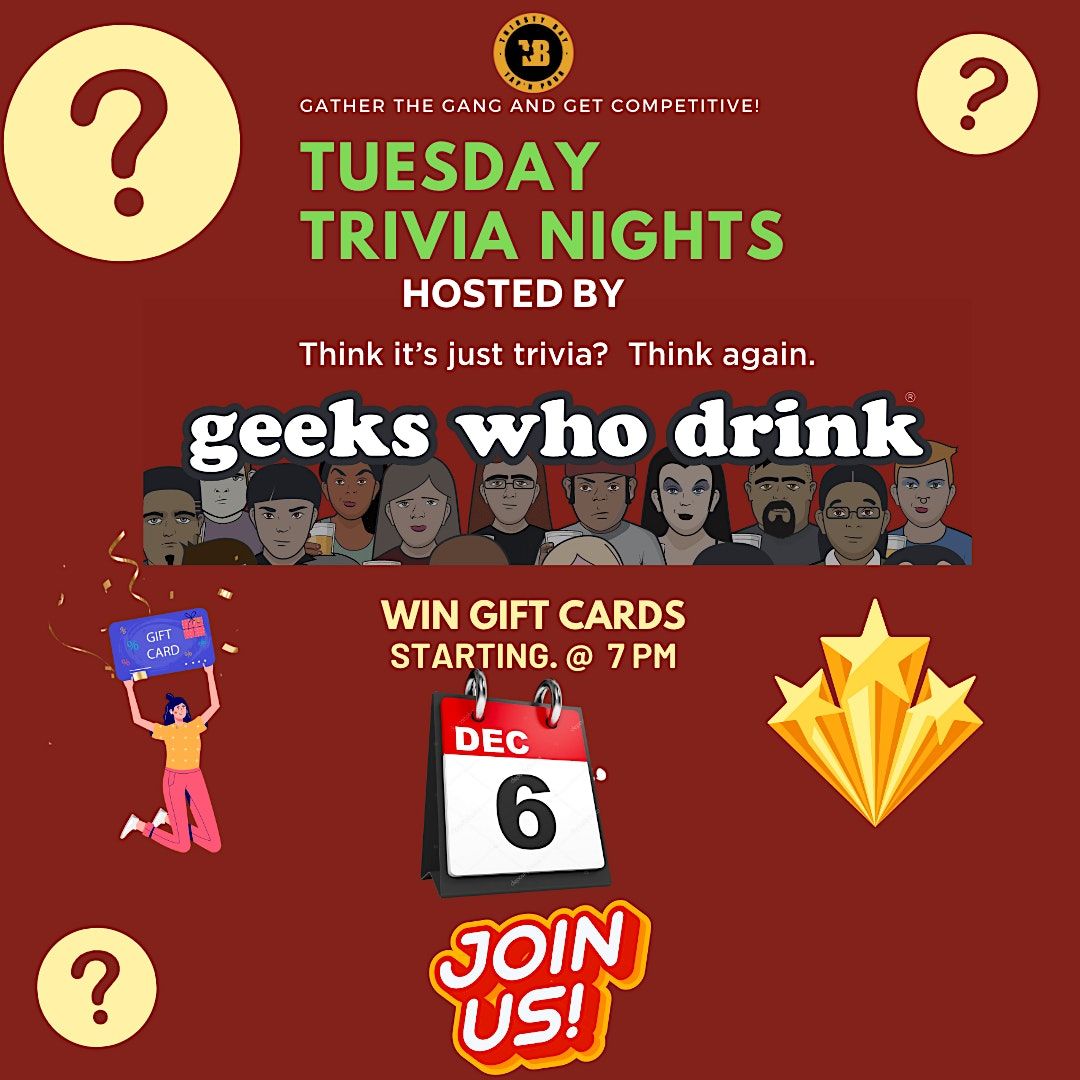 Tuesday Trivia nights - Hosted By Geeks Who DrinkAbout this Event