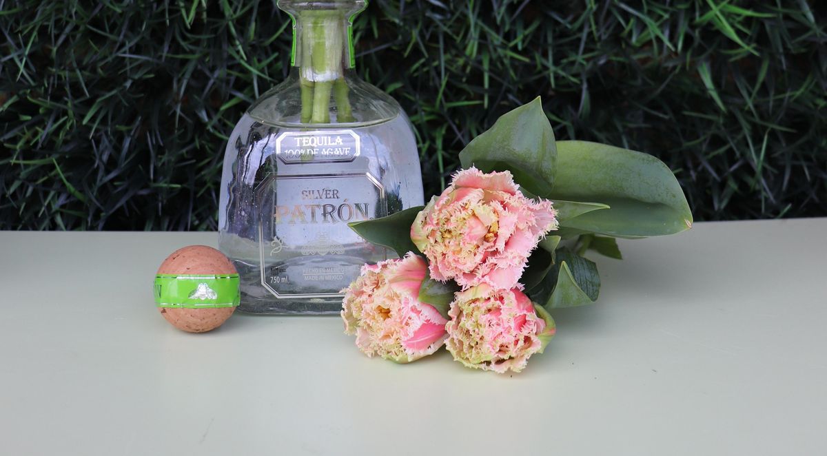 For only $45 enjoy your very own mini bottle of Patron + a floral arranging workshop!