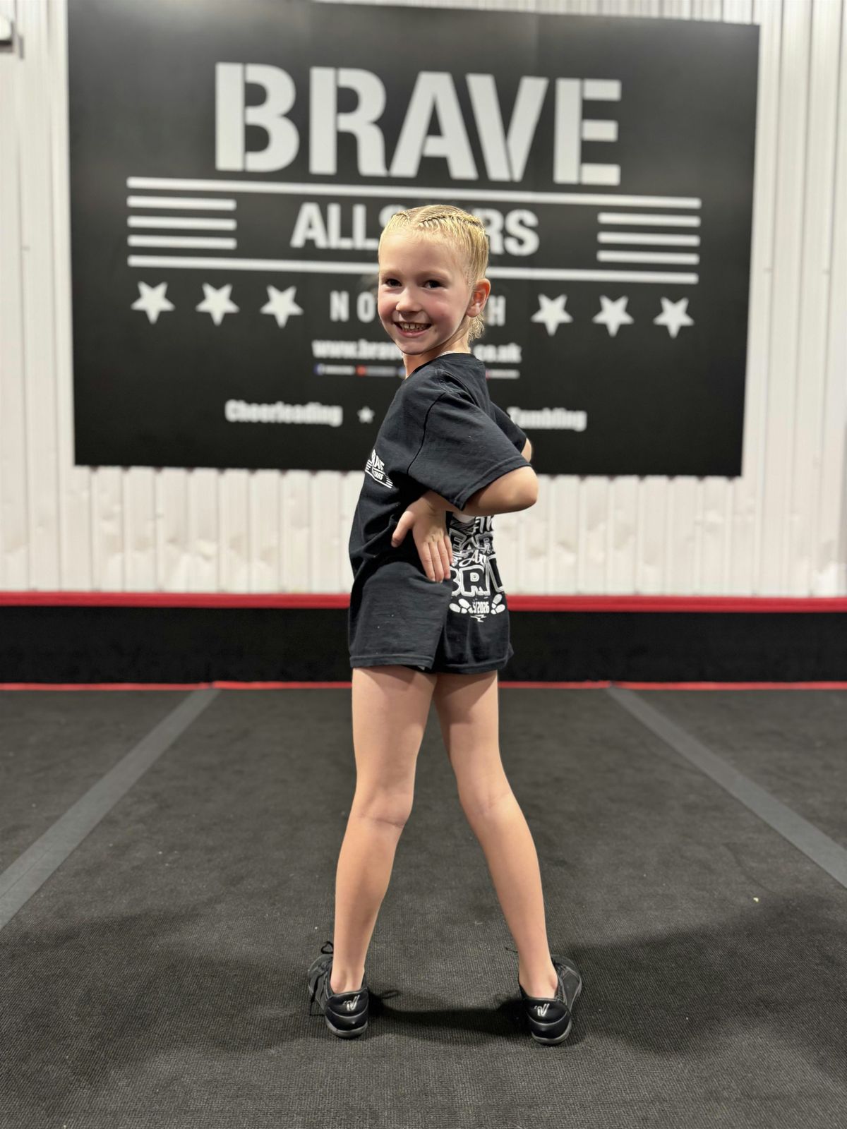 We ask that you bring water in a named bottle, all jewellery is removed or taped up, hair is out of the face in a style that will last the duration of the session, you wear comfortable, sporting clothes along with bare feet or cheer shoes. Brave apparel can be bought from our on site pro shop, but neither the apparel or cheer shoes are compulsory. Our 'Cheer Shoe Recommendation' document can be found on the homepage of our website. We recommend outdoor shoes that can be slipped on and off rather than lace up shoes to avoid congestion. Please note, apparel from other UK Cheerleading programmes is not permitted to be worn. Please be in Brave apparel or generic sports clothing.