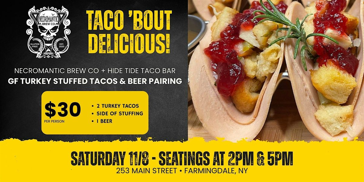 Join Necromantic Brew Co and High Tide Taco Bar for a flavorful afternoon of turkey tacos and craft beer pairings! This special autumn-inspired event brings together bold brews and savory bites β perfect for foodies and beer lovers alike.