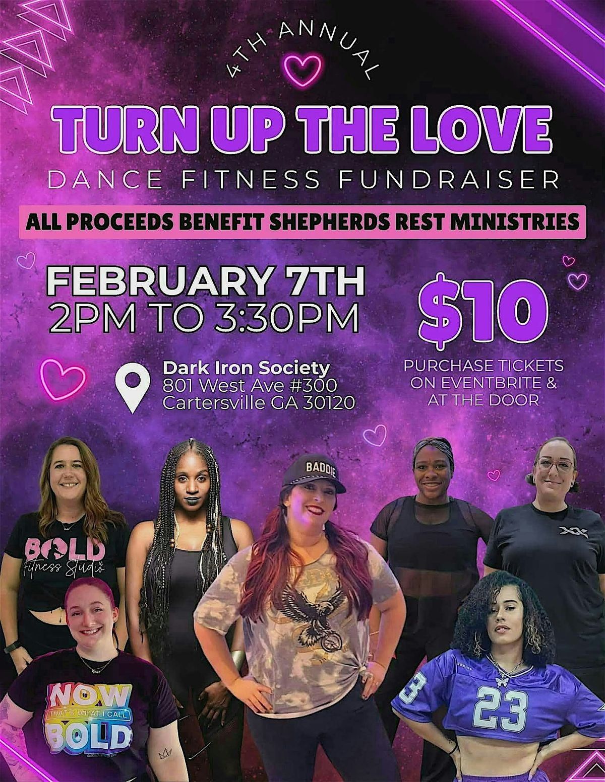 Join us for the 4th annual Turnup the Love Dance fitness event benefiting the domestic violence center. All fitness levels welcome .