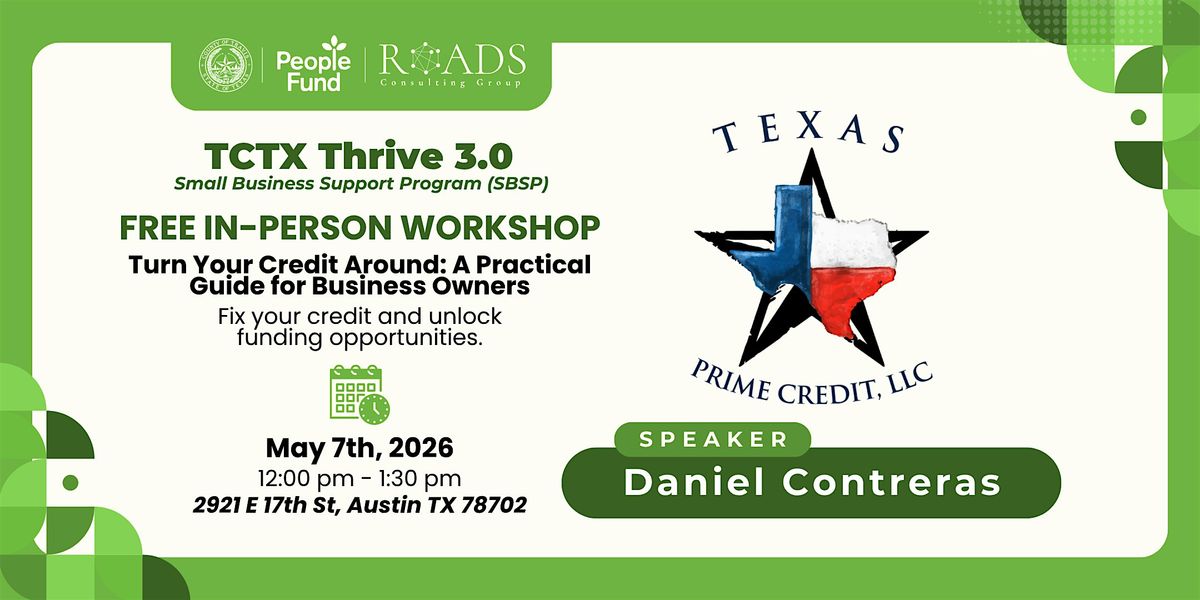 The session will be led by Daniel Contreras from Texas Credit Repair, who will break down the credit repair process in a clear, practical way so you can move forward with confidence.