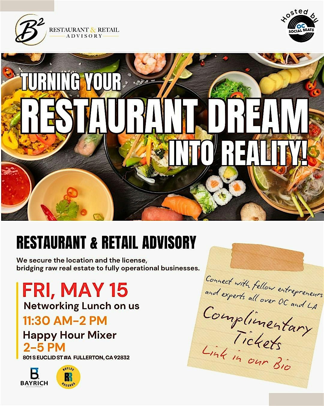 Admission is complimentary, but space is limited. Please RSVP to secure your spot and lunch. Join us! Connect with fellow entrepreneurs and experts all over OC and LA!