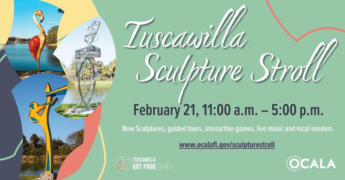 Come celebrate the ten, newly installed sculptures from the 2026-2027 Ocala Outdoor Sculpture Competition at the Tuscawilla Sculpture Stroll! This is a FREE event open to the public.