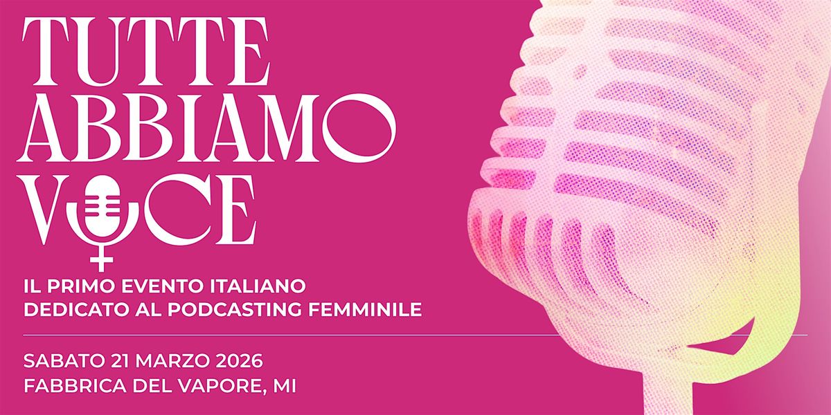 "Tutte abbiamo voce" è il primo evento nazionale che unisce voci, autrici e produttrici del mondo podcast. Una giornata per fare rete tra podcaster italiane ed europee, produrre nuove narrazioni e potenziare il ruolo femminile nell'industria del podcasting.