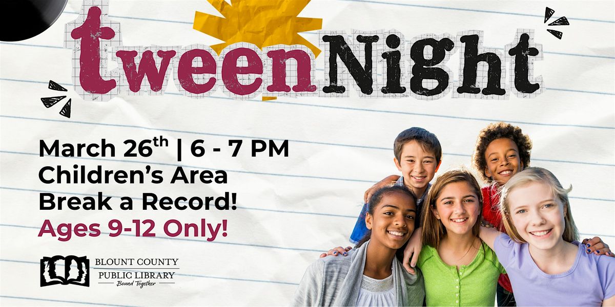 Do you have what it takes to become a Record Breaker? Tweens are presented with some real and very silly Guinness World Records and will attempt to break them during this event. Ages 9 - 12 Only. Registration is required.