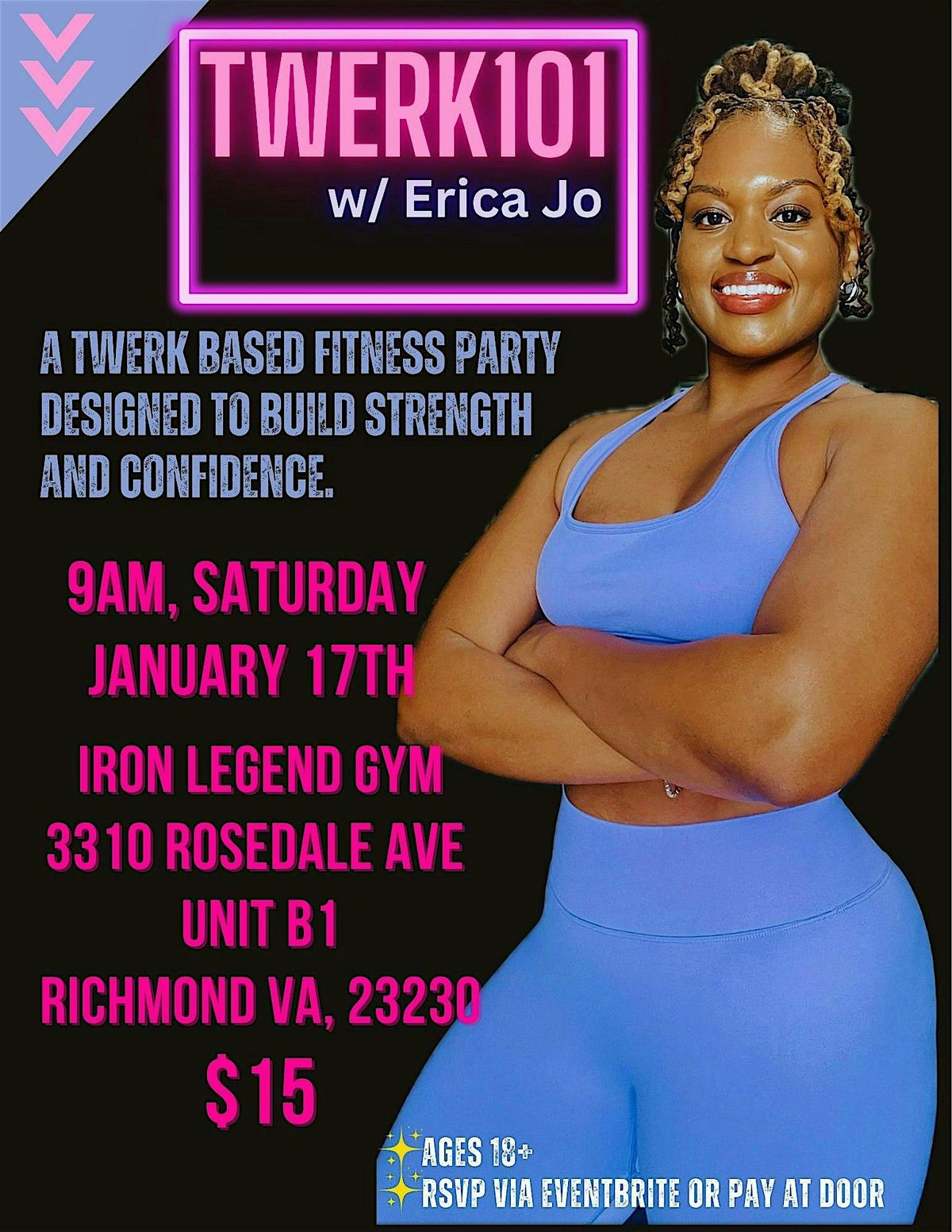 Twerk 101 is a high-energy, twerk-based fitness party designed to build strength, confidence, and sexy empowerment. Whether you’re resetting for the New Year or just need to move, sweat, and release, this class is your space to show up and feel amazing. All fitness levels are welcome.