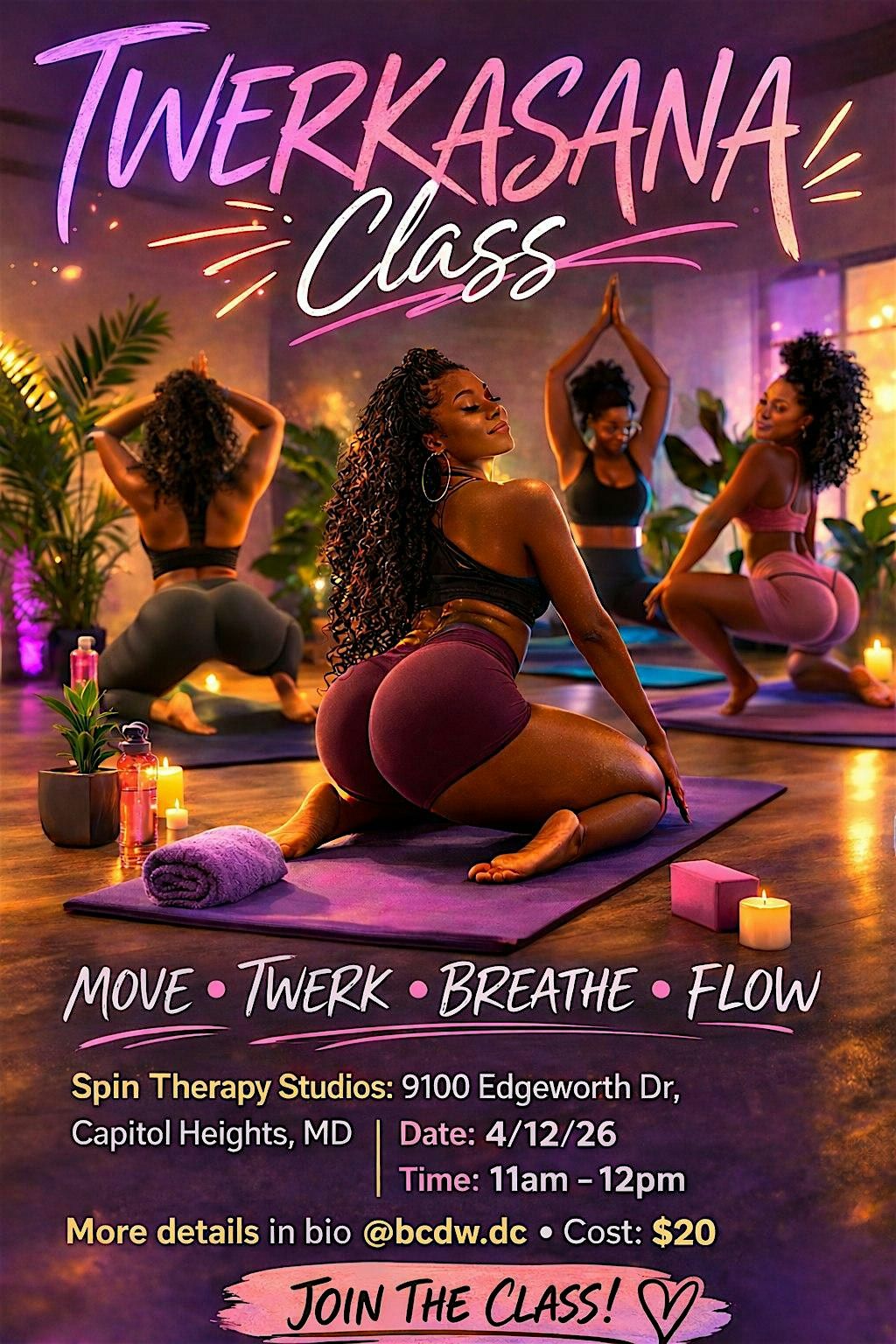 Get ready to shake things up at Twerkasana! This fun, in-person event is all about blending the sultry moves of twerking with the Somatic therapy. Whether you’re a pro or just looking to try something new, Twerkasana invites women to reconnect with their power, sensuality, and freedom through intentional movement. Don’t miss this one-of-a-kind experience!