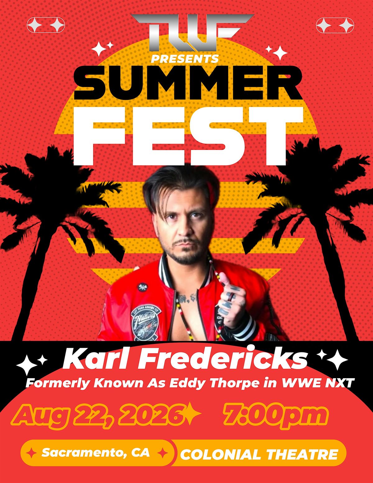 The hottest event of the whole Summer is at Sacramento's Colonial Theatre!! Live Pro Wrestling!! The return of Karl Fredericks from WWE NXT!About this Event