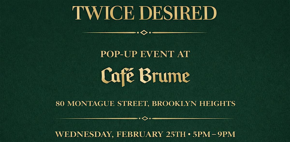 Join Twice Desired for a special Wednesday evening pop-up at Café Brume in the heart of Brooklyn Heights.
