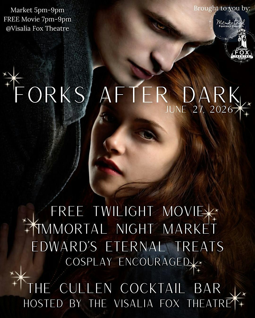 Forks After Dark invites you to a free, family-friendly evening inspired by Twilight at the historic Visalia Fox Theatre.