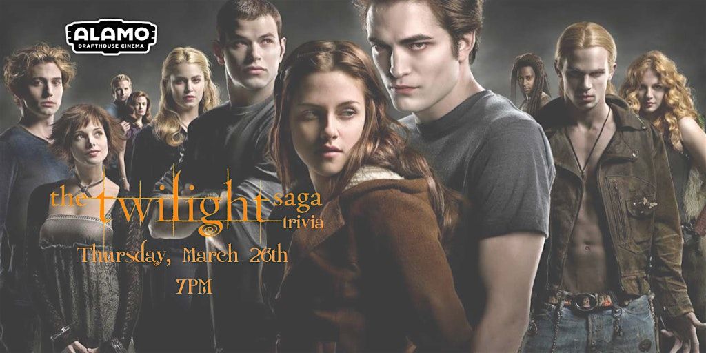 Come to our Twilight Movie Trivia to test yourself on how advanced your knowledge of the saga really is at Alamo Drafthouse Cinema on Thursday, March 26th @ 7:00 PM.