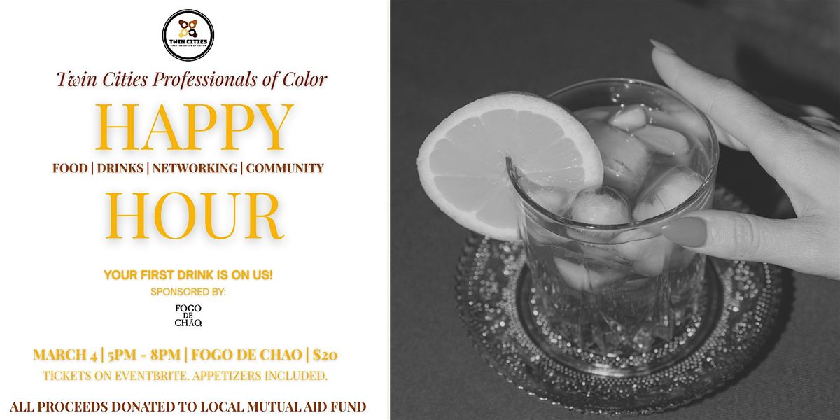 The Twin Cities Professionals of Color Happy Hour is the perfect opportunity to unwind, network, and enjoy delicious food and drinks in a vibrant atmosphere. Whether you're a seasoned professional, new to the industry, or a business owner, this event is open to all. Don't miss out on this fantastic chance to connect with like-minded individuals and expand your circle. Mark your calendars and get ready for a memorable night!