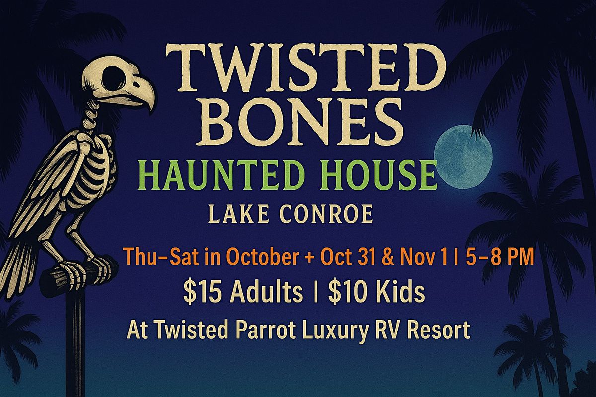 Step into the shadows at Twisted Bones Haunted House 🎃🦴, where spooky fun 👻🕷️ meets a family-friendly atmosphere on Lake Conroe 🌙✨. Designed to thrill without the gore, it’s the perfect Halloween night out for kids and adults alike 🧛♀️🦇.