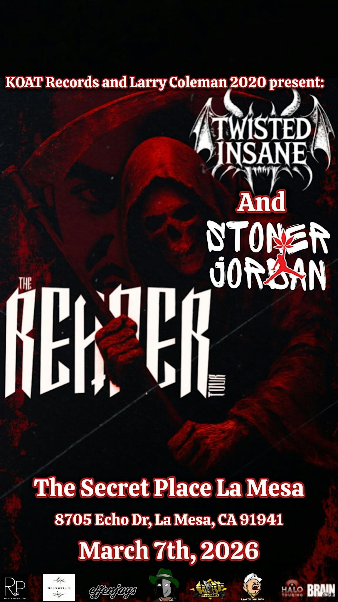 Join us in person for an unforgettable night with Twsisted Insane as he brings the Reaper Tour to San Diego! Expect insane rhymes, high energy, and a vibe you won’t forget. This is your chance to see one of the best live—don’t miss out!