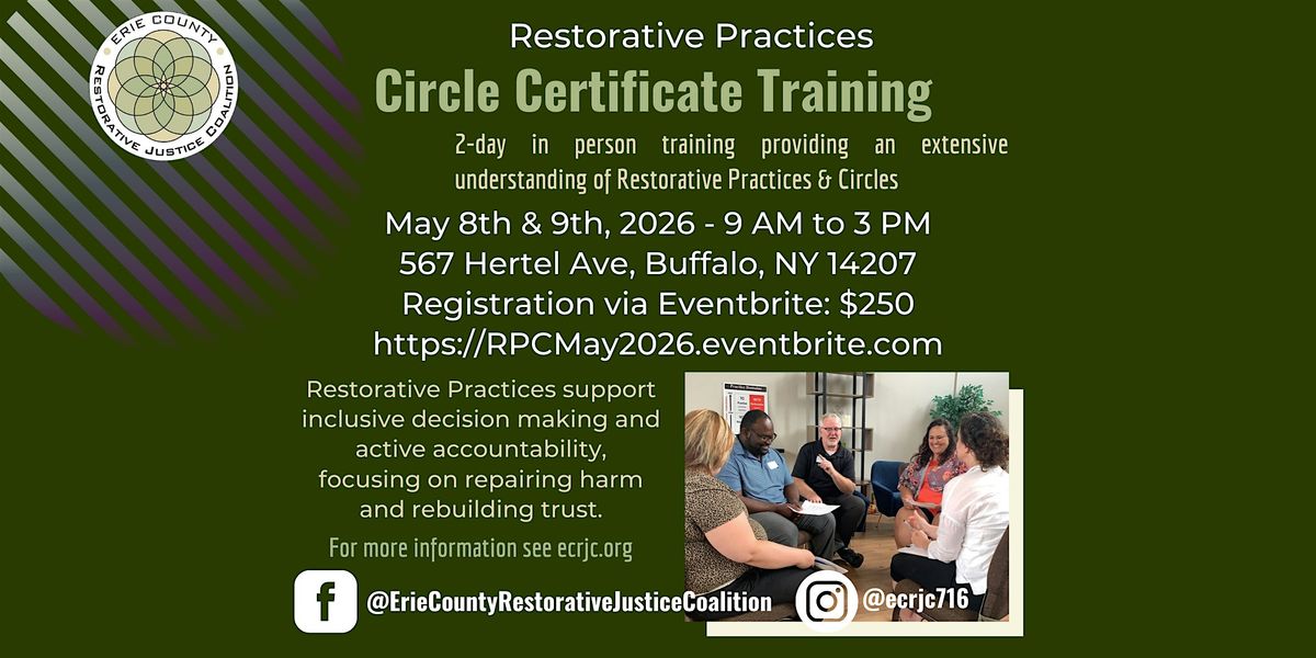 The Restorative Practice Trainings are facilitated by experienced practitioners in the field of restorative practices. This training is designed for community members, organizations, schools and criminal justice institutions who desire to understand the basic principles, values and processes of restorative practices as an intervention in our society. Participants will receive an introduction to the restorative practice continuum through affective language, small impromptu conferencing, community building circles, and restorative justice conferencing. The overall mission is to create caring community climates based on respect, responsibility, and repair of harm. Participants will learn and experience the difference between restorative and retributive (or punitive) justice through personal stories and experiences.