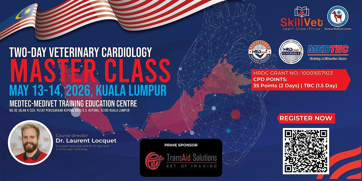 Join us at Pets Corner Sdn Bhd on April 2, 2026 at 10:00 AM (MYT) for an exciting two-day master class all about veterinary cardiology. Whether you're a vet or just passionate about animal health, this event is packed with practical tips, hands-on sessions, and cool insights to boost your skills. Don’t miss out on this chance to learn and connect in a friendly, informal setting!