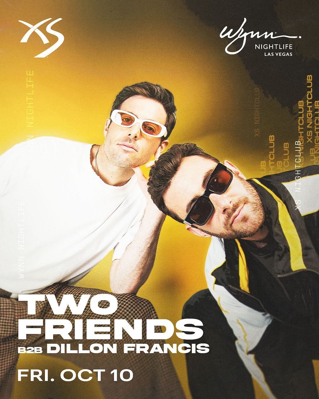 ✨ Experience the magic of Two Friends B2B Dillon Francis at XS Nightclub at Encore, where moments become memories that last a lifetime! 🏛️ The iconic XS Nightclub at Encore in Las Vegas, NV sets the perfect stage for an unforgettable celebration on October 10th, 2025 at 10:30 PM. 🌟 It's been a curated experience that brings together the best of entertainment and innovation, creating an atmosphere of wonder and excitement. From the moment you arrive, you'll be immersed in a world where the ordinary transforms into the extraordinary. 🎊 Book early to secure your place in what promises to be an event that will be talked about for years to come!