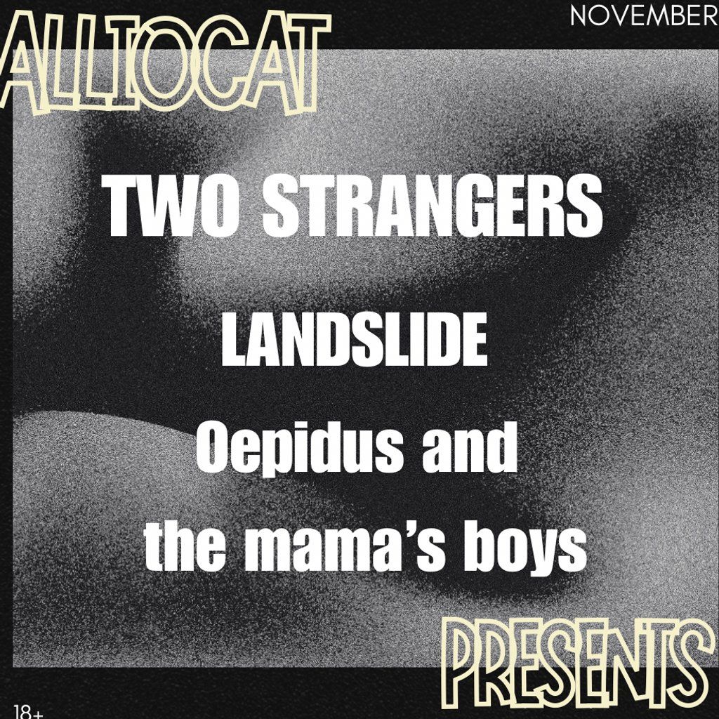 AllioCat Presents, Two strangers, Landslide & Oepidus and the mama's boys at 1990.Music Genres : Indie, Rock, Shoegaze